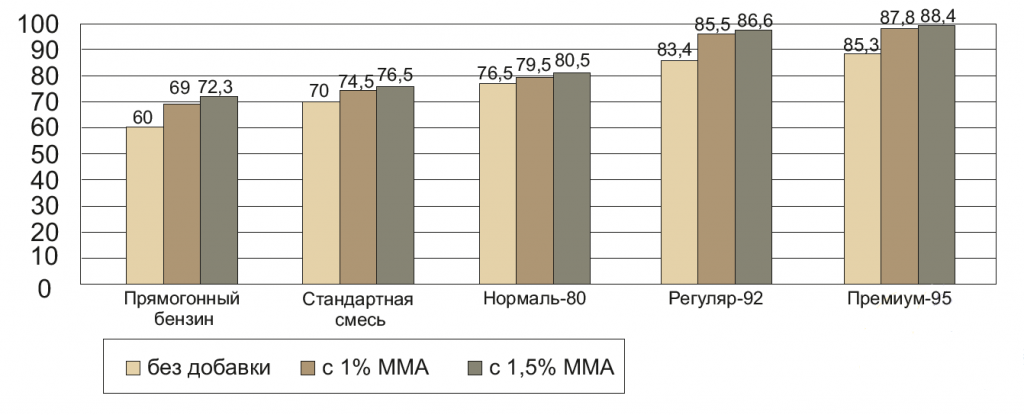 Регуляр-92 + 1% об. ММА = Премиум-95